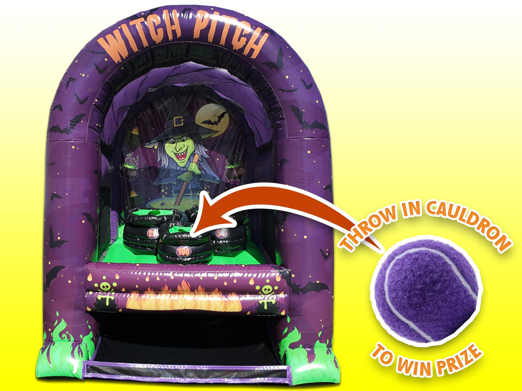 Witch Pitch challenges you to throw 5 balls into he different cauldrons. Score points and be the winner of the spooktacular game...